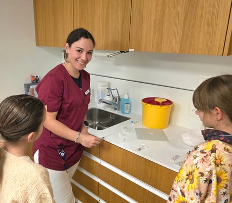 Fünf begeisterte Kinder erkundeten am Zukunftstag das Medizinische Zentrum Kemmental.